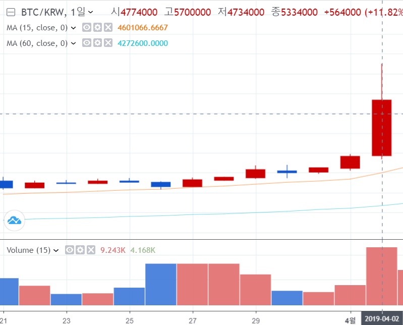 저 날은 상당한 불장(양봉 즉 모든 코인의 가격이 오르는)이었습니다.